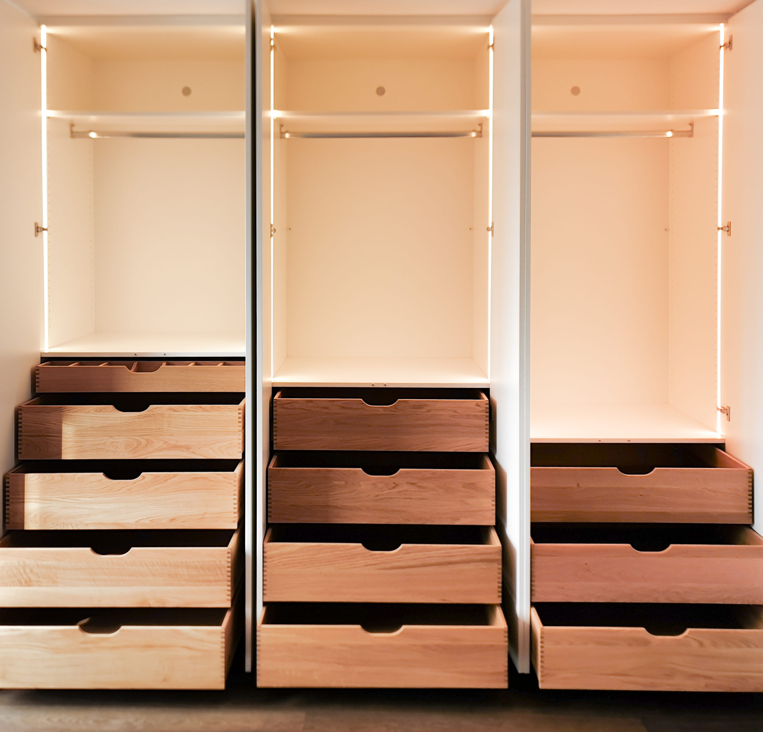 - Kleiderschrankschubladen: Perfekt für die Aufbewahrung von Kleidung, Accessoires und Schmuck.