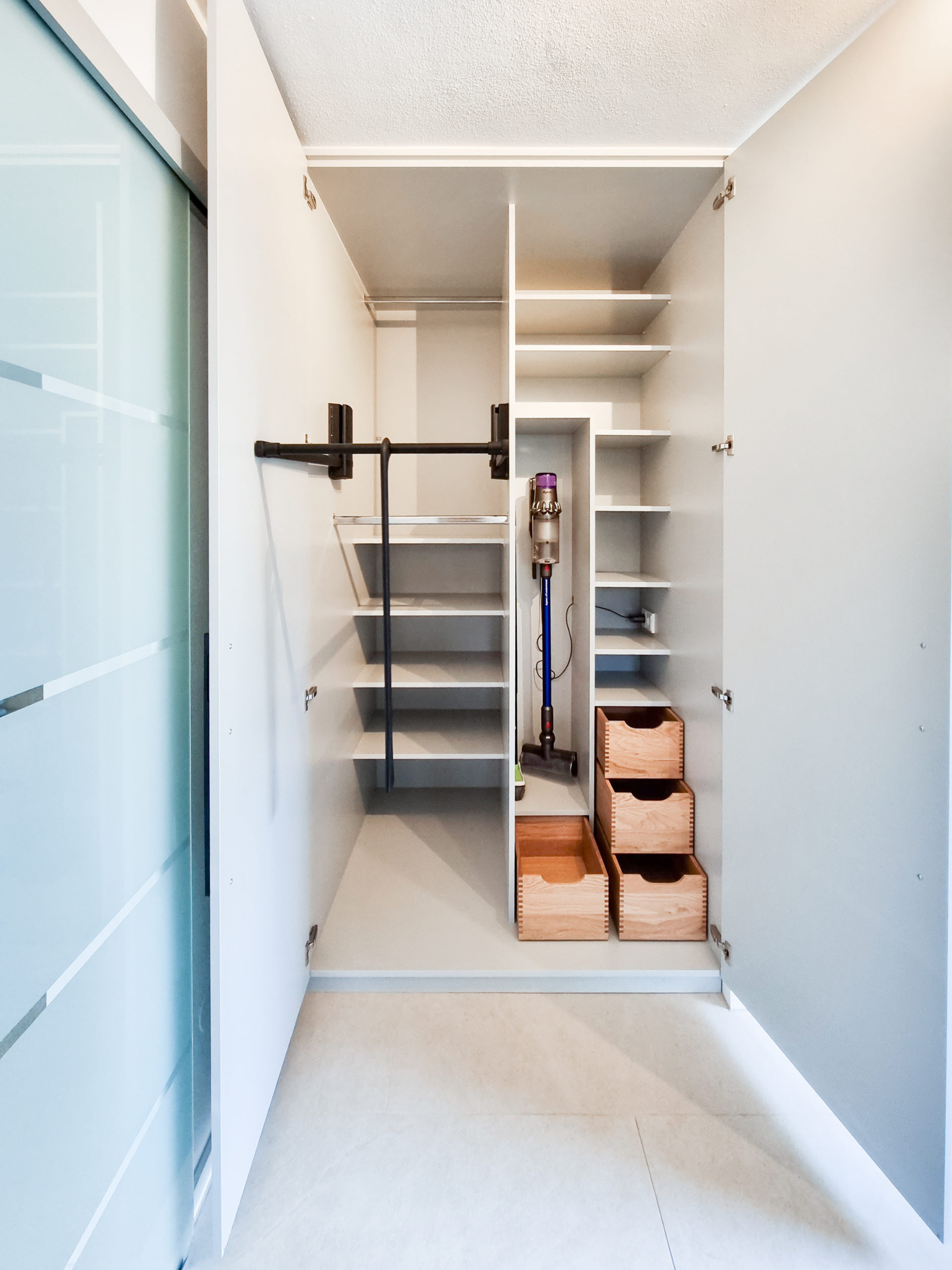 Besonders in Kombination mit einer maßgefertigten Schranklösung entsteht ein durchdachtes Ordnungssystem.