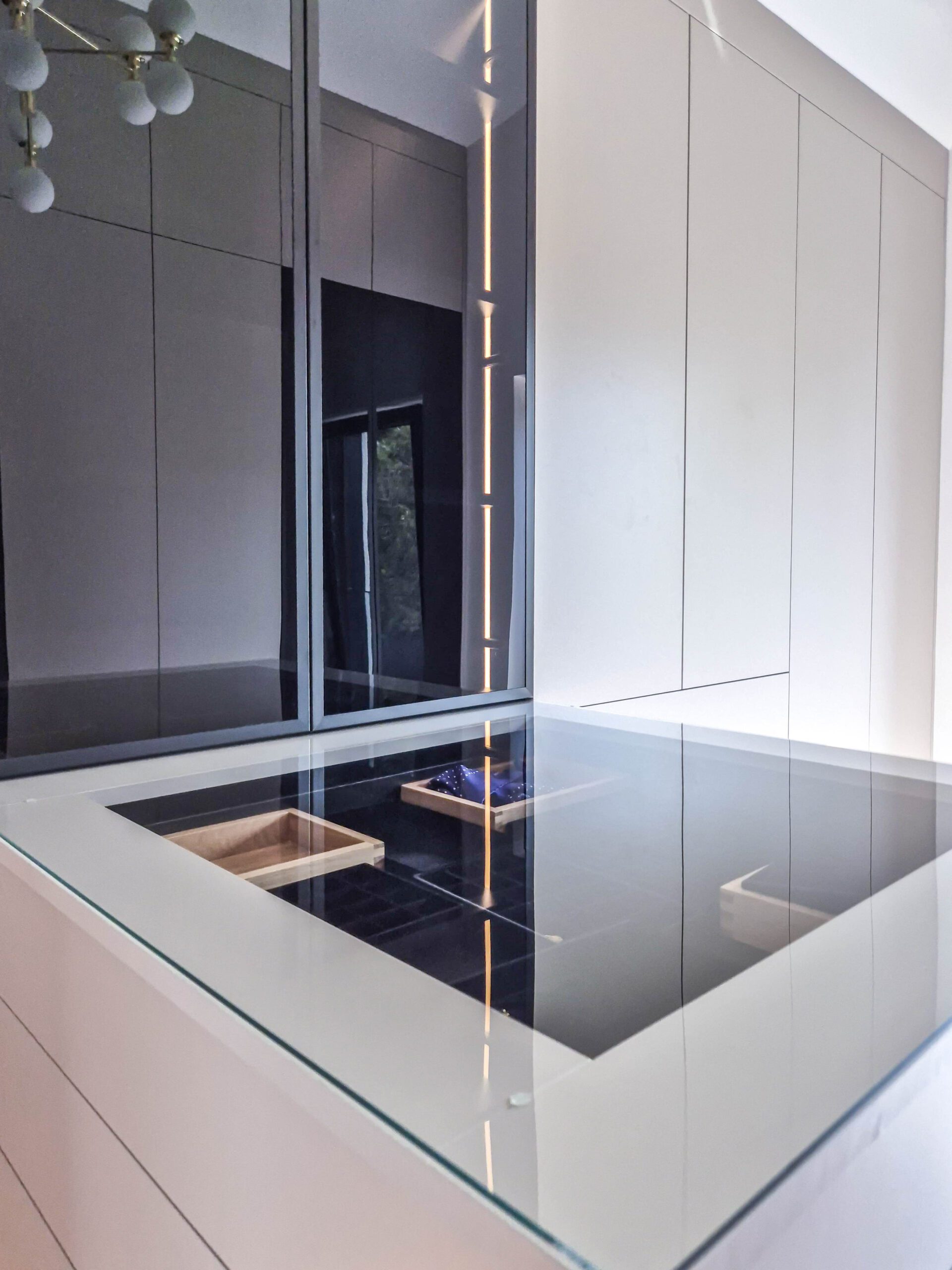 Wie integriert man einen Schrank in eine Wand, die durch Elektro- und Fußbodenheizungsverteilungen stark eingeschränkt ist? Die Lösung musste nicht nur Stauraum und ein modernes Design bieten, sondern gleichzeitig sicherstellen, dass Sicherungskästen und Verteilerkästen jederzeit leicht zugänglich bleiben, ohne die Funktionalität oder die Ästhetik zu beeinträchtigen.