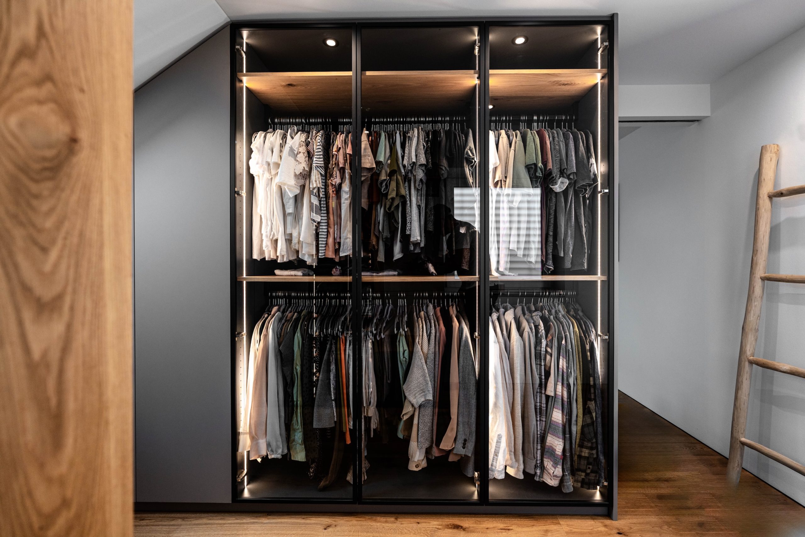 Unsere Schränke nach Maß passen sich nahtlos jedem Raum an – ob modern oder klassisch, unter Dachschrägen, im Ankleidezimmer oder als funktionale Garderobe. Dank millimetergenauer Planung entsteht eine individuelle Stauraumlösung, die Architektur und Raumgestaltung perfekt ergänzt und Dein Zuhause sichtbar aufwertet.