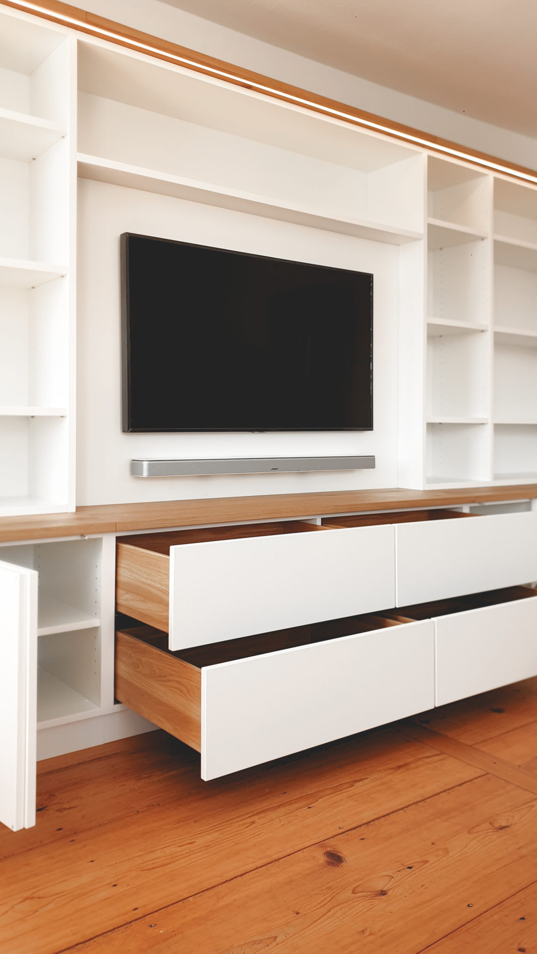Was du bekommst? Eine Wohnwand nach Maß, die nicht nur perfekt aussieht – sondern sich auch richtig anfühlt.